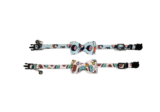 2 Pack Cat Collar with Bowtie - Sushi and Donut Print